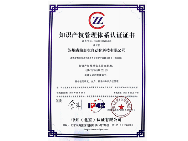 知識(shí)產(chǎn)權(quán)管理體系認(rèn)證證書