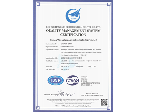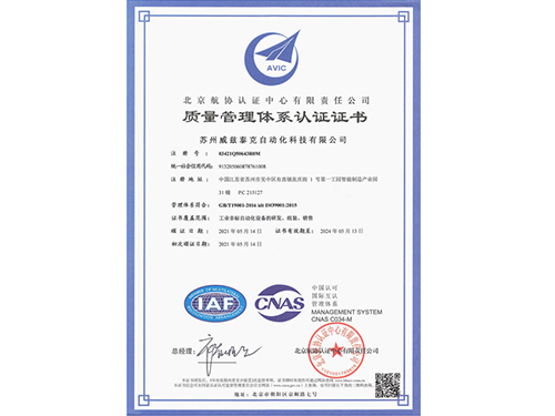 質(zhì)量管理體系認(rèn)證證書(英文)